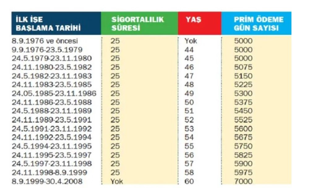 5000 ila 5975 gün prim koşulu bulunuyor.