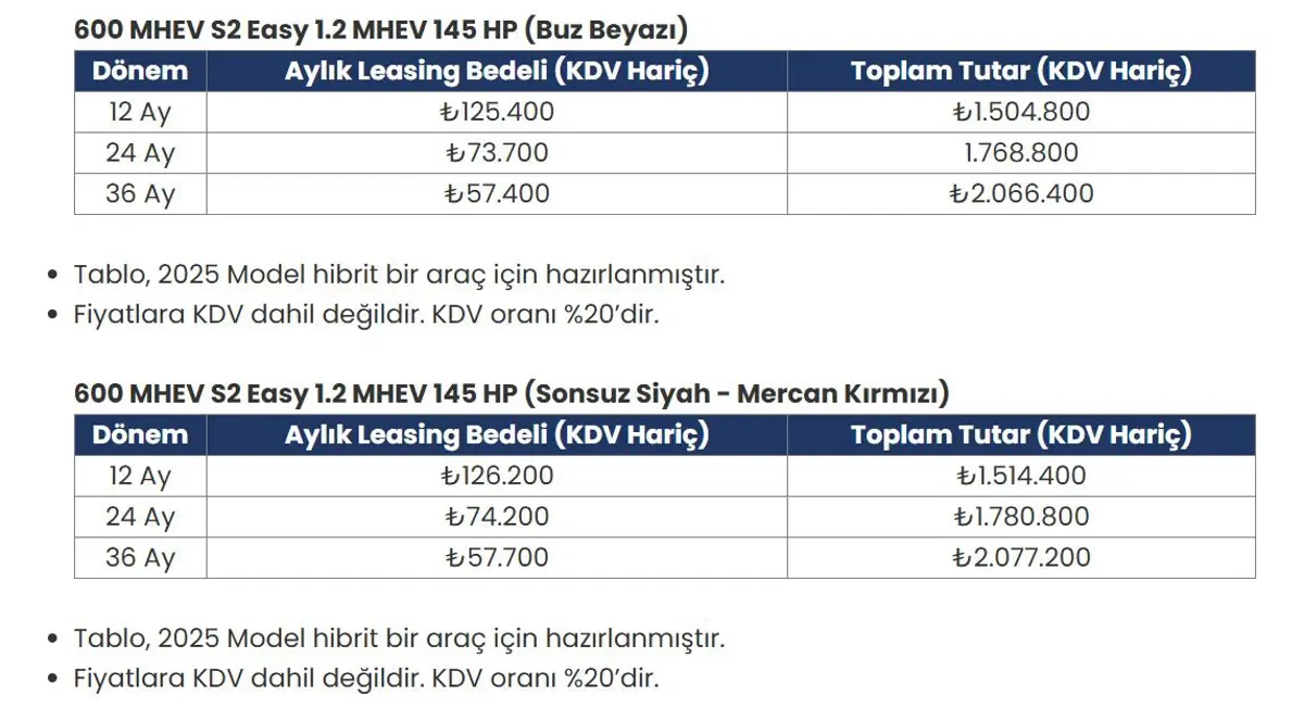 Sadece Fiat 600 değil, ticari alanda sıklıkla tercih edilen Fiat Scudo ve Fiat Doblo modellerinde de leasing kampanyaları bulunuyor. İşletmeler, her üç model için de detaylı ödeme planlarını ve şartları öğrenmek üzere doğrudan Fiat yetkili bayileri ile iletişime geçmeliler.