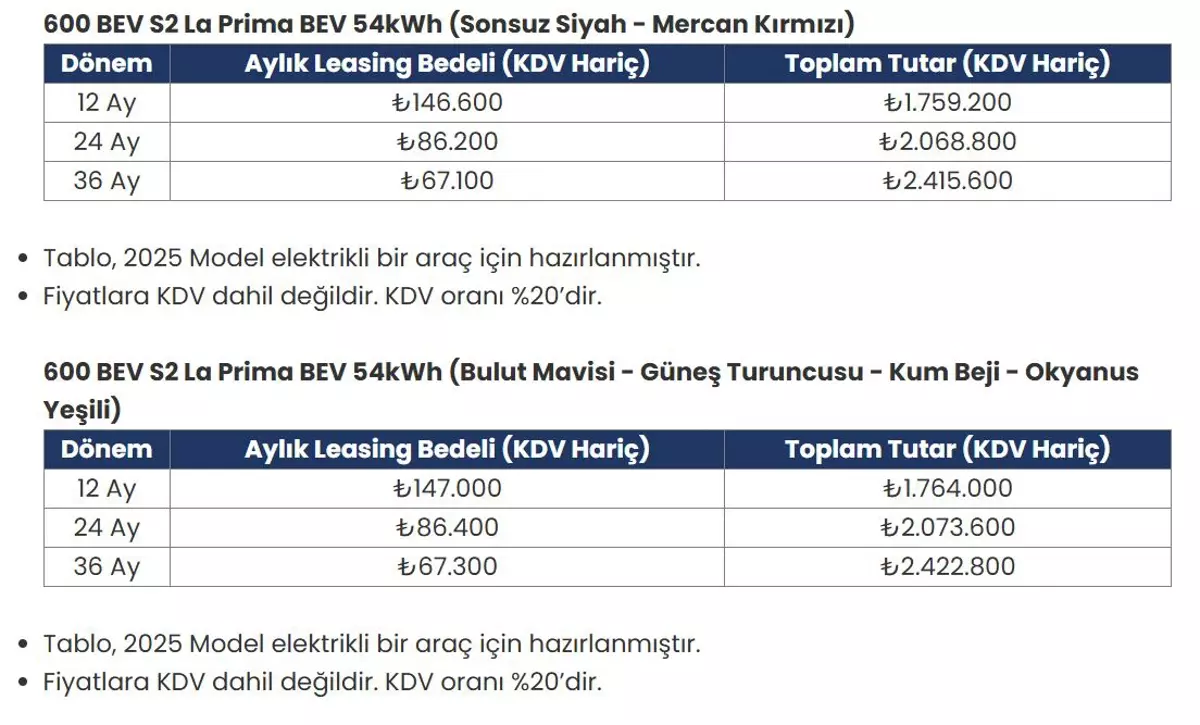 | 600e 115 kW/156 HP – 54 kwh La Prima | La Prima | Otomatik | Elektrikli | 1.969.900 | 1.959.900 |