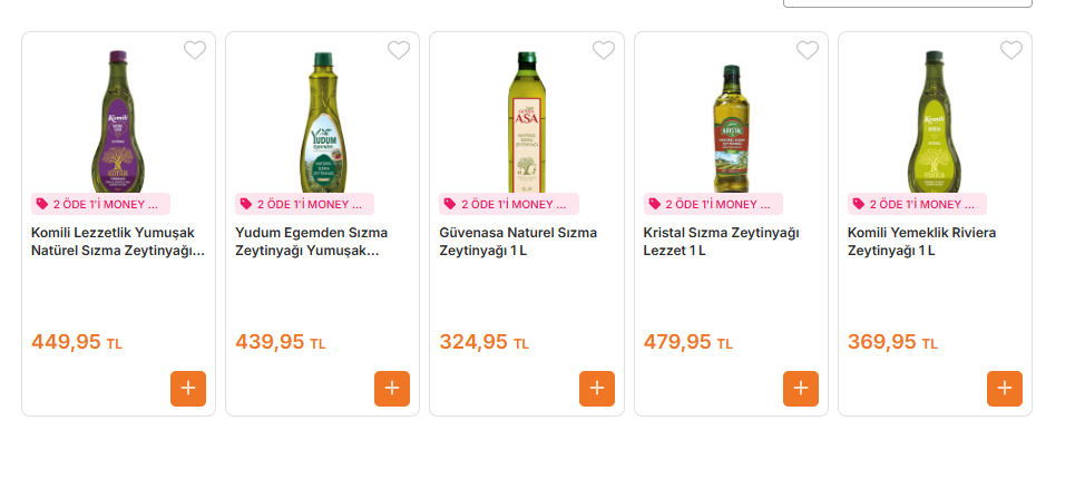 Ürün Seçimi: Kampanyaya dahil olan aynı zeytinyağından sepetinize 2 adet ekliyorsunuz.