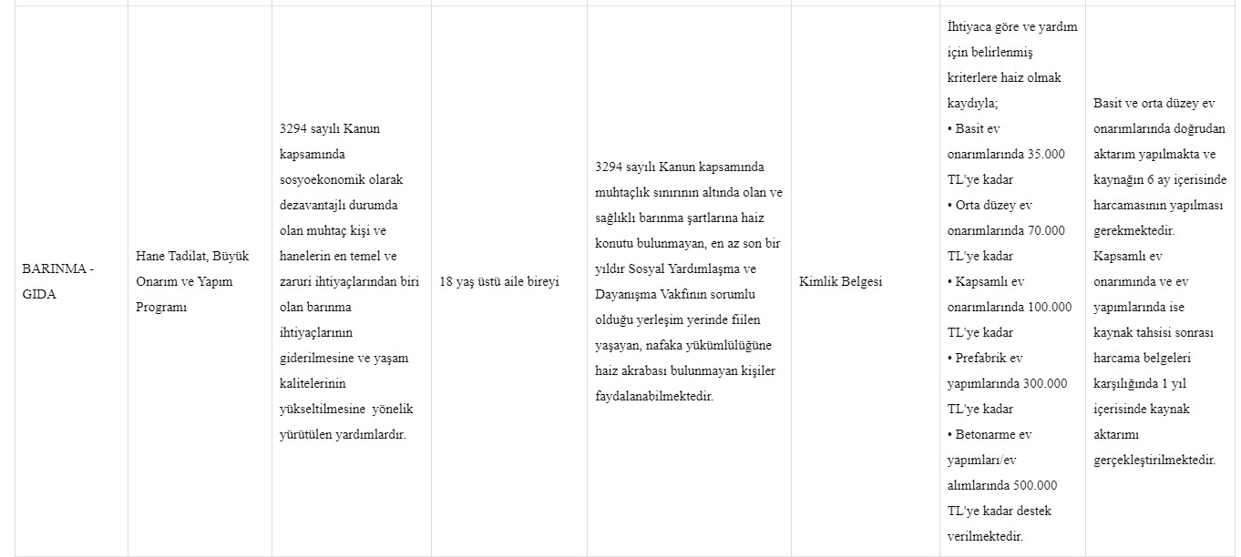 Bakanlığın açıkladığı “Hane Tadilat, Büyük Onarım ve Yapım Programı” kapsamındaki bu destek, belirli şartları taşıyan kişilere verilecek. Yardım alabilmek için gerekli şartlar şunlar: