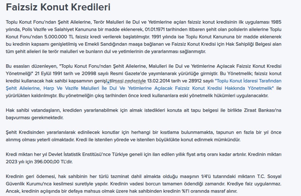 SGK tarafından sağlanan bu özel destek, TOKİ projelerinden konut sahibi olmak isteyen şehit aileleri, terör malulleri ve yakınlarına yönelik. 1985 yılında yürürlüğe giren sistem, 2014’te güncellenerek kapsamı genişletildi. Bugün ise Ziraat Bankası aracılığıyla, hiç faiz ödemeden 10 yıla kadar vade imkânı sunuluyor.